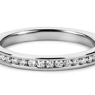 Eternity rings with channel set are mounted between two metal bands, which gives them additional protection against shocks and wear.This setting creates an elegant and uniform appearance, without visible claws, which makes the ring more comfortable to wear and less prone to pitting to hang clothes. This setting is ideal for those who prefer a modern and safe design for precious stones.
